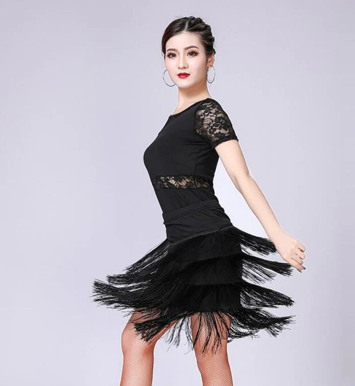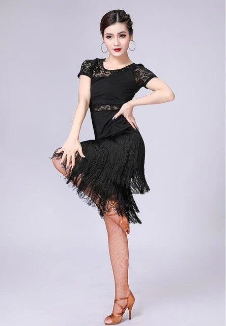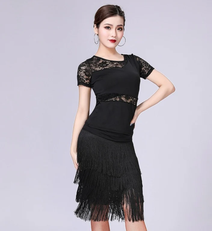 Ensemble Top manches courtes & Jupe franges danse latine