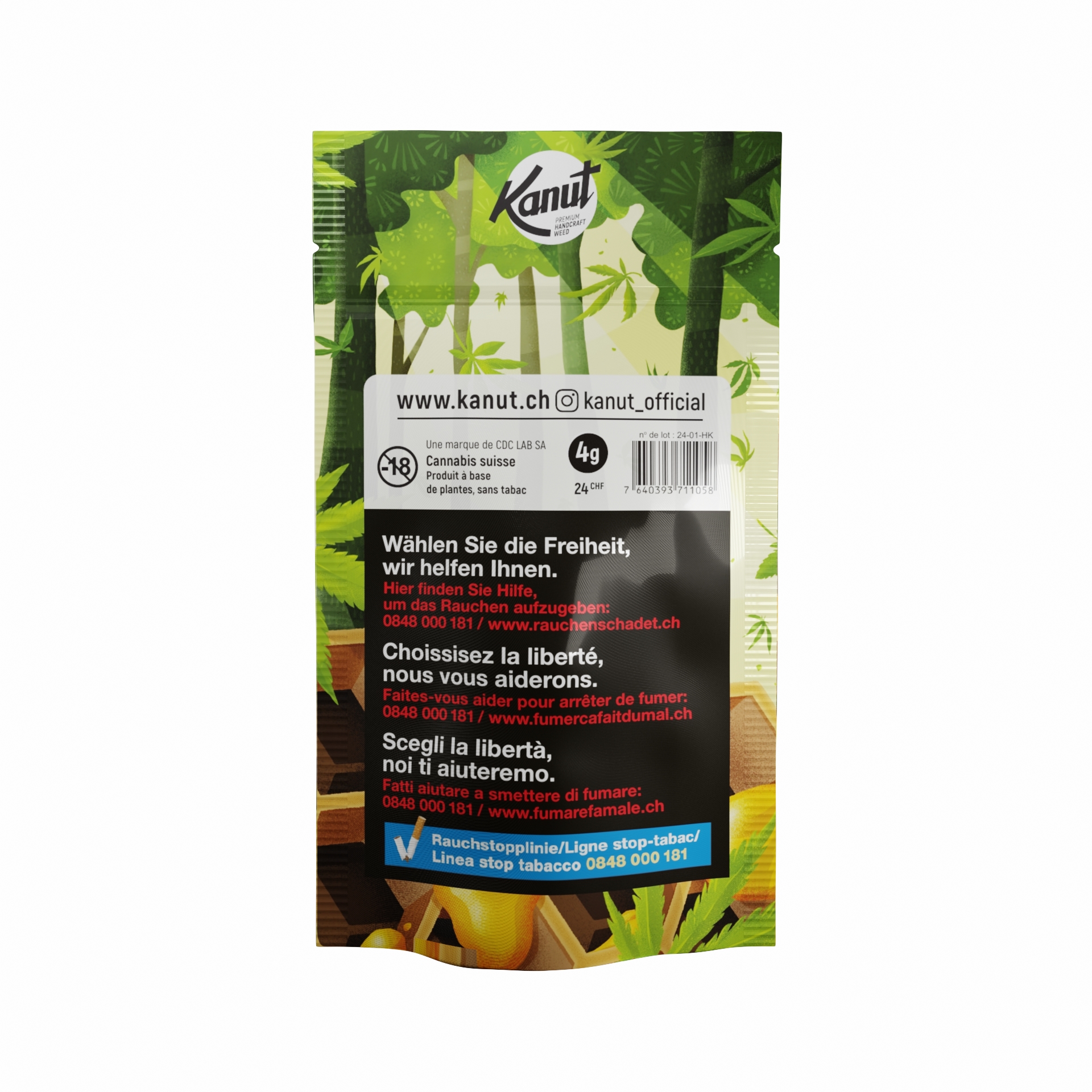 Goût: Miel, pins, encens, baies Taux de CBD: 6 – 11% Taille des fleurs: Grosse Contenance: 4g Dès l’ouverture, retrouvez des effluves douces et sirupeuses de miel, d’encens et de sous-bois. Avec sa saveur complexe, à mi chemin entre les goûts marqués des variétés Skunk et Kush, et son taux de cannabinoïdes relativement faible, la Honey Kush se prête parfaitement à une consommation journalière. Un petit régal, sans prise de tête. Nos fleurs CBD organiques sont cultivées en Suisse selon les principes de l’agriculture naturelle de M. Fukuoka, garantissant un goût unique.