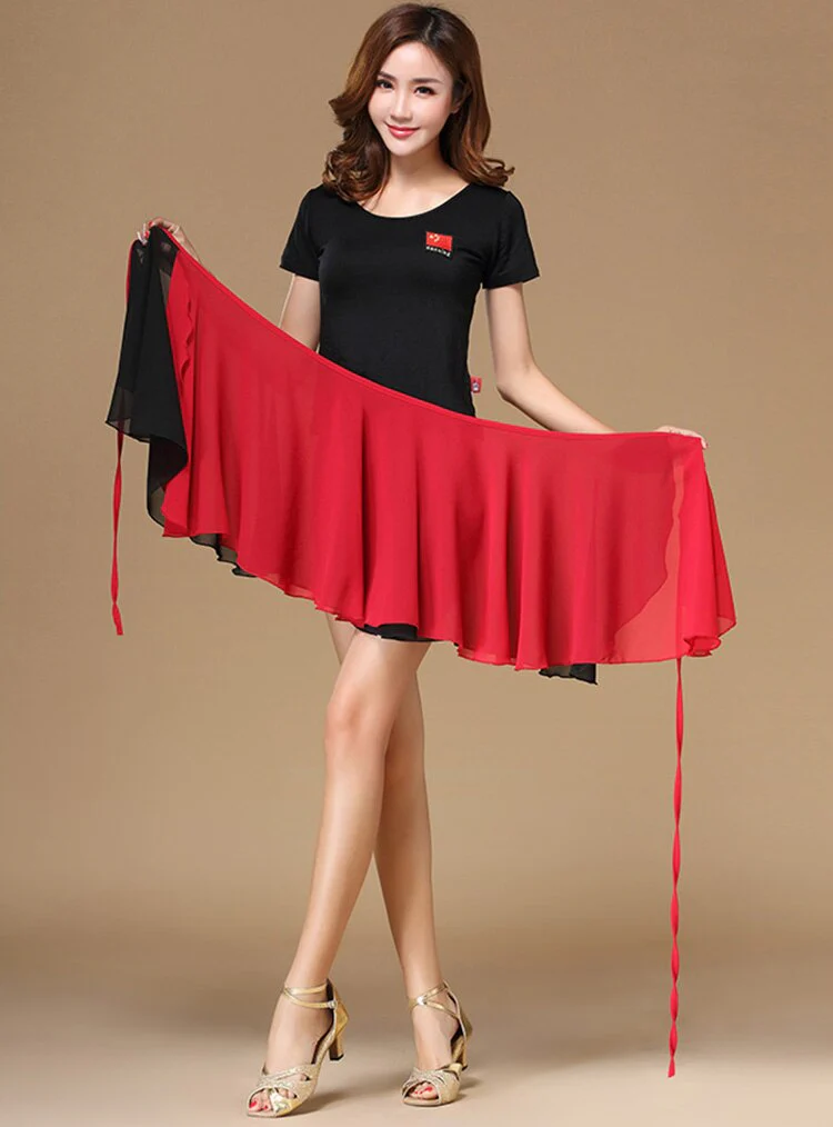 DESCRIPTION Couleur noir et rouge Taille unique Marque: NANTDANCE Caractéristiques: Matière: Elasthanne + Polyester Jupe courte longueur 40cm Largeur 110cm A nouer à la taille Tissu respirant et évacuant l’humidité Idéal pour la Danse