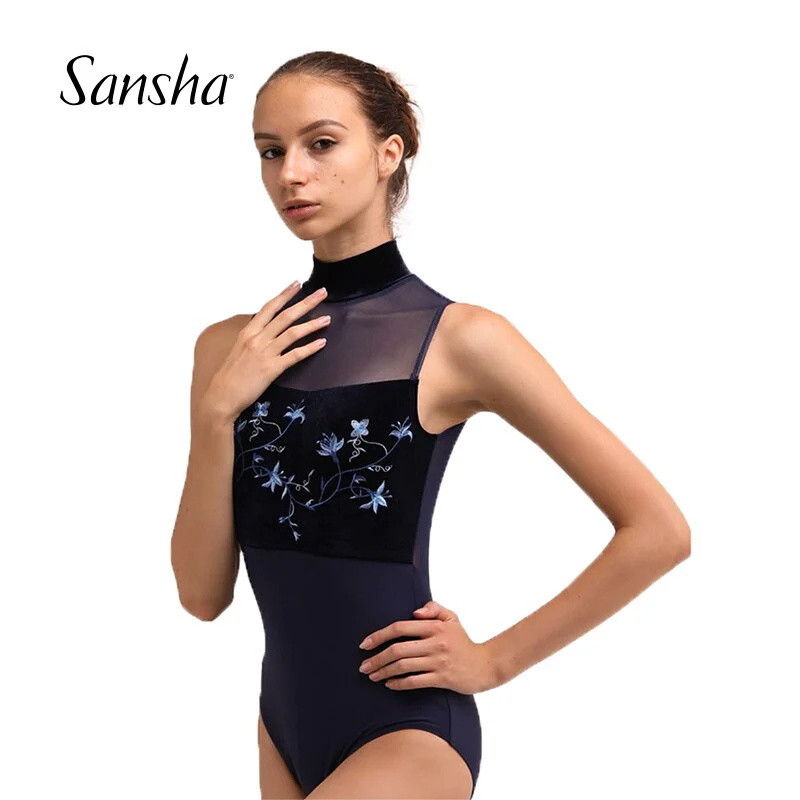 DESCRIPTION Couleur bleu marine Tailles disponibles: du S au XXL Marque: Sansha Caractéristiques: Pour femme Matière: 75% polyester, 25% élasthanne Sans manches Tissus respirant et extensible Col officier avec boutons pressions au dos Dos fantaisie Taille normalement Idéal pour la Danse